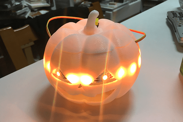 普通のジャックオランタンだと 渋谷のハロウィンに負けるので ハックして勝てるものに仕上げました。