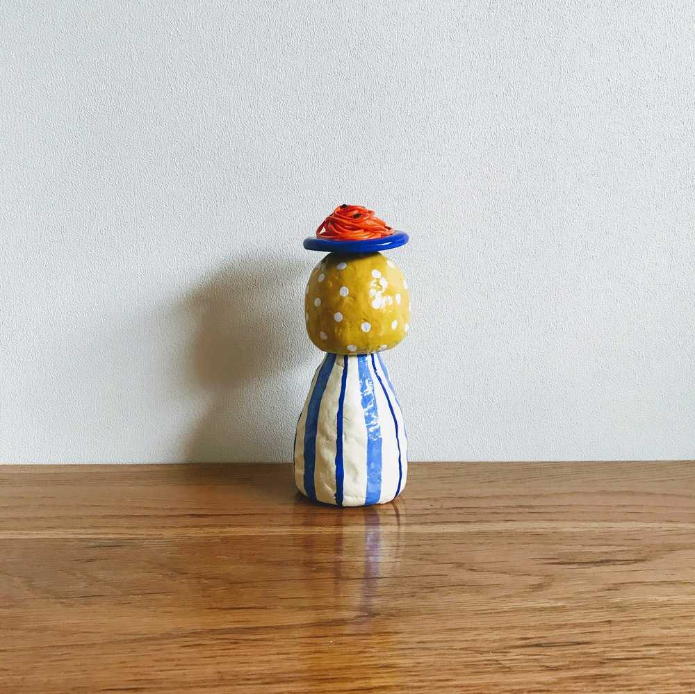 ナポリタンが大好きな気持ちを込めて、粘土をこねました。前衛的なナポリタンの置物が完成しました。