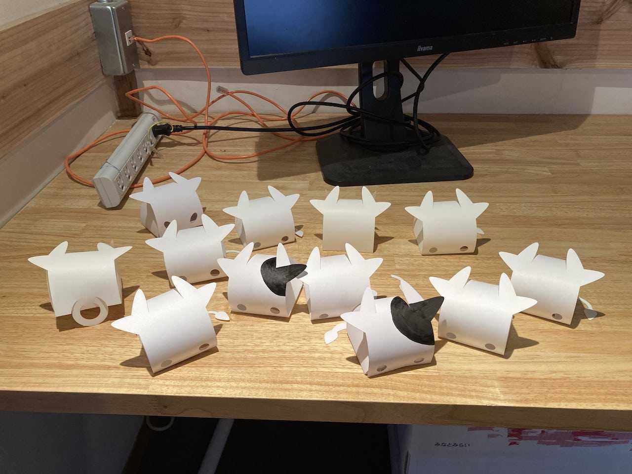 最近は立体になる年賀状にはまっています。今年は和菓子の箱のように組み立てると牛になる年賀状を作りました。ぺちゃんこの状態で封筒に入れて、受け取った人が組み立てると牛になります。